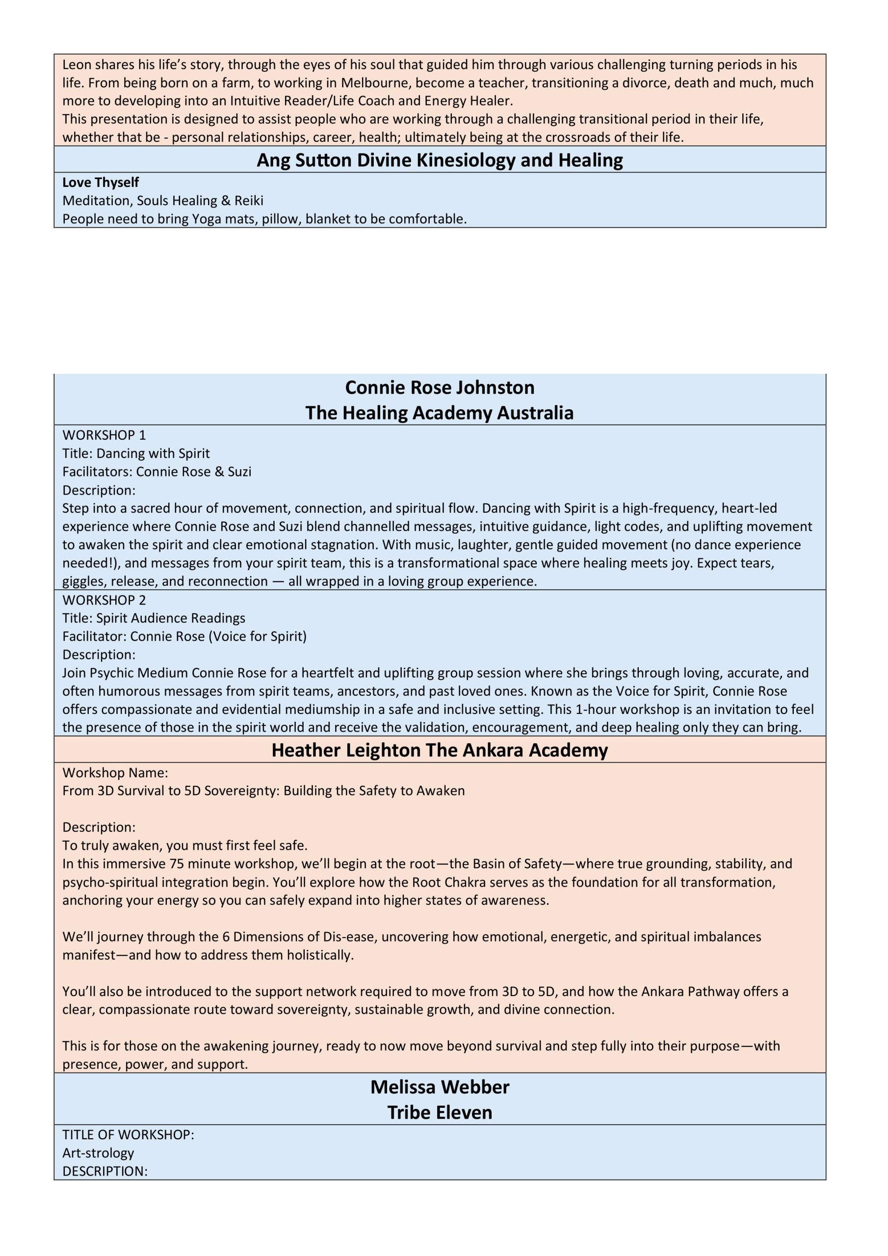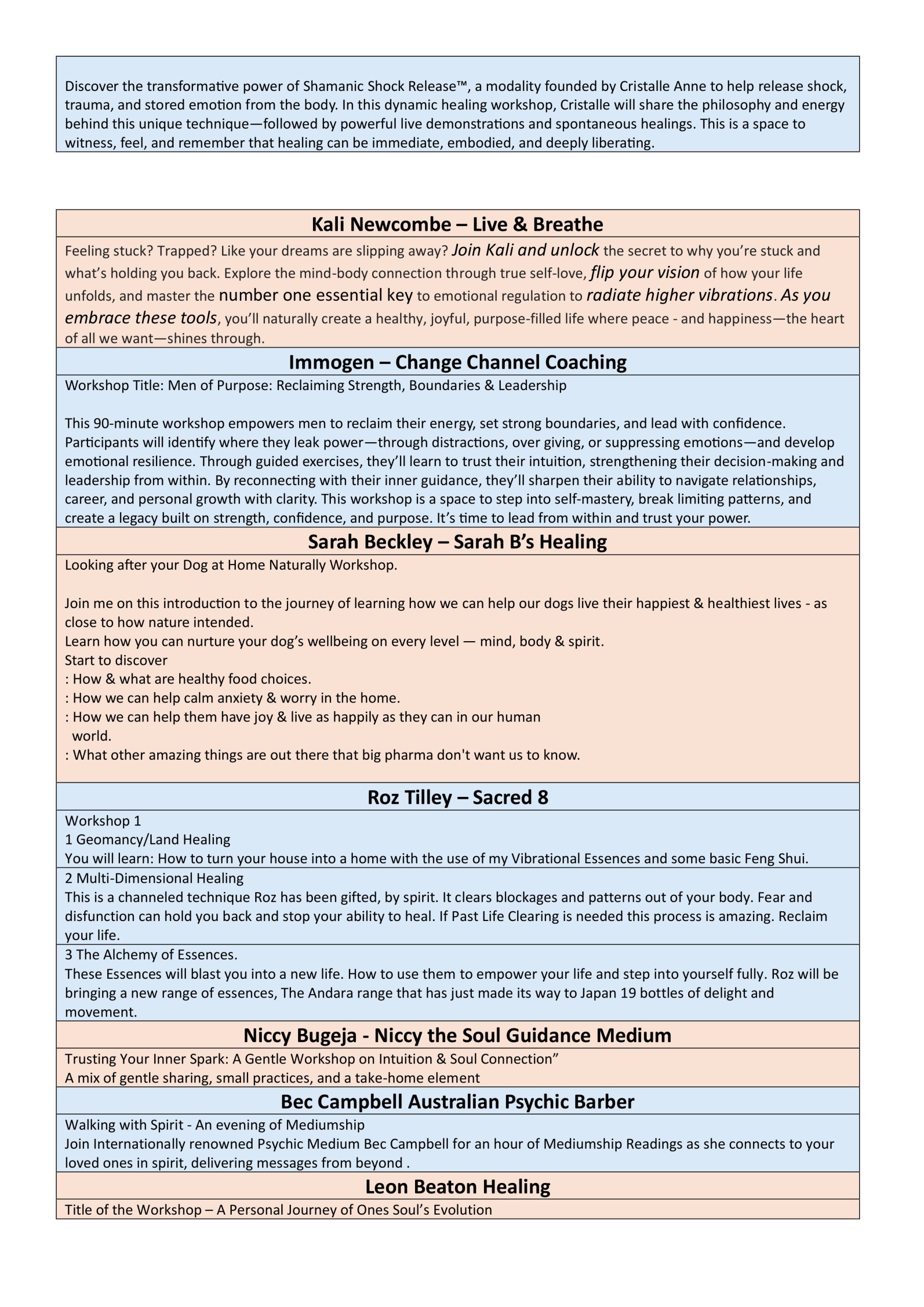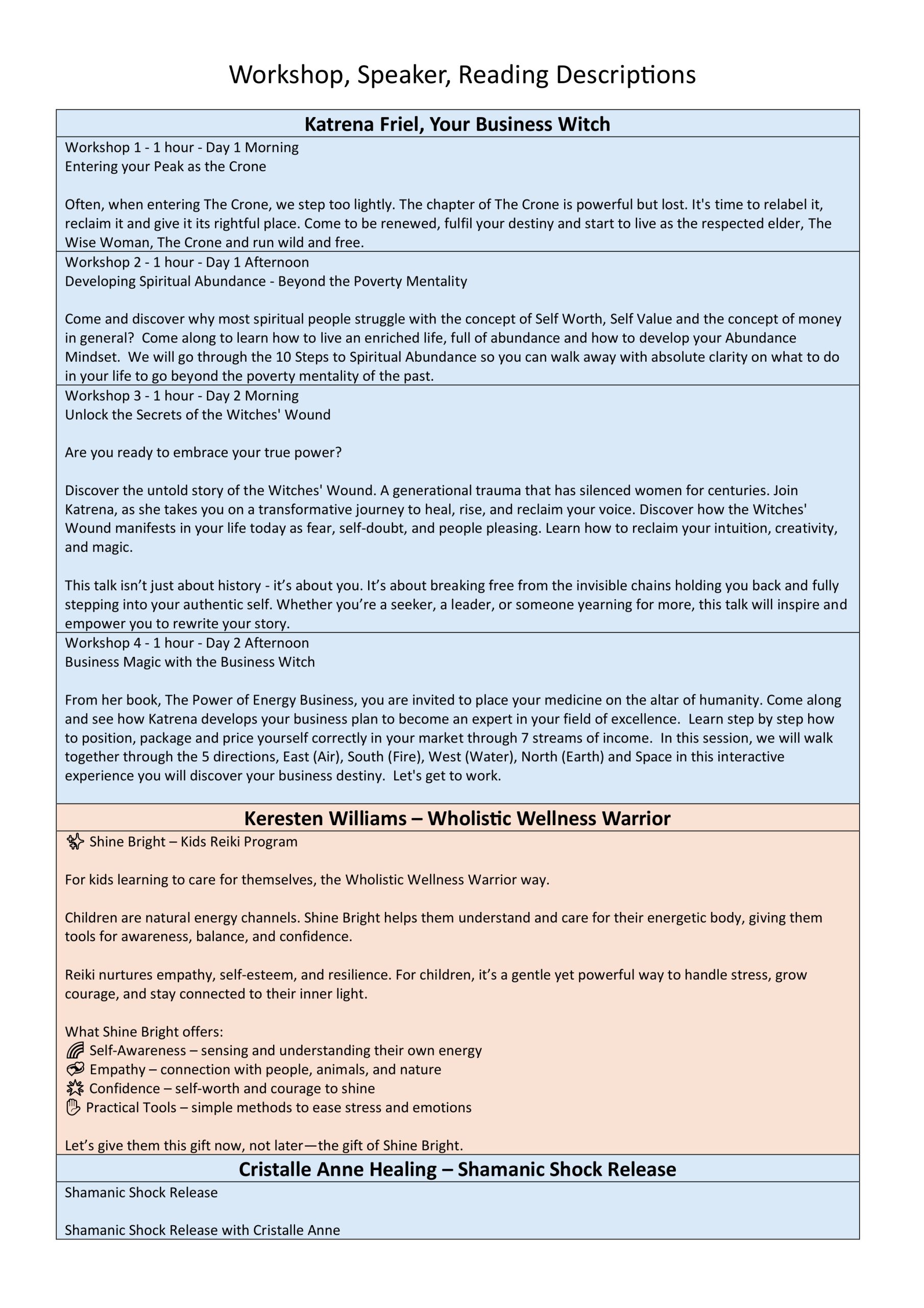 To find out more about what’s involved in each of the Workshops, Presentations & Readings, and to read more about each of our fabulous presenters. continue scrolling through the information on this page.